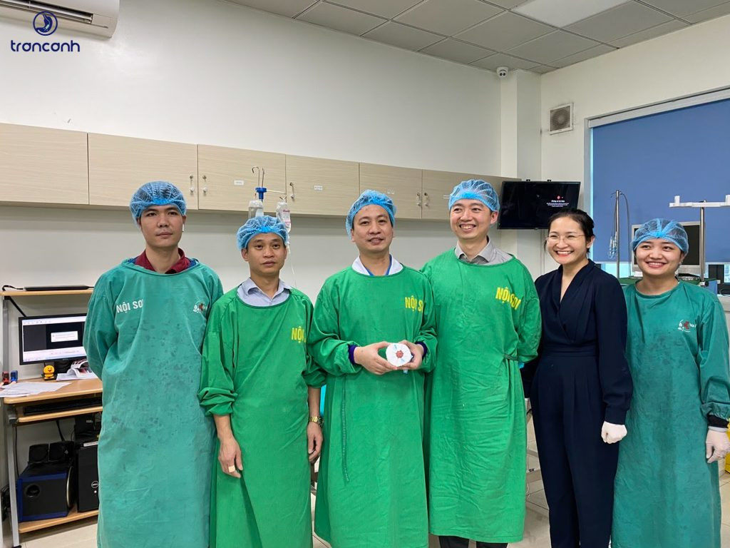 Bác sĩ Trần Cảnh (thứ ba từ phải sang) cùng đồng nghiệp